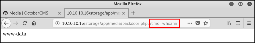 Теперь я могу инициировать выполнение команд от имени www-data, обратившись к загруженному файлу с аргументом cmd.