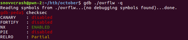 Альтернативным подходом к получению адресов требуемых функций является использование команды print отладчика GDB. Загрузив ovrflw для отладки, аналогично просмотру маппинга памяти выставим точку останова на main, запустим программу и вытащим нужные нам адреса.