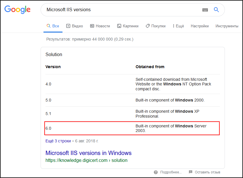 Итак, что у нас есть? Веб-сервер Microsoft IIS, версия 6.0. Если спросить Google, что он знает об этой ревизии IIS, то он сдаст «мелкомягких» с потрохами: Windows Server 2003.