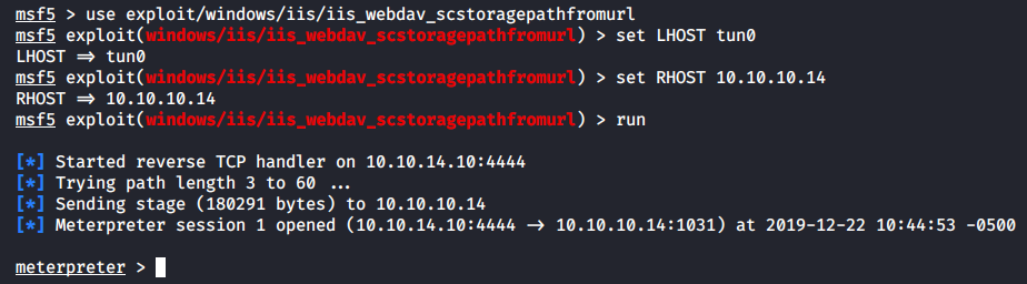 use exploit/windows/iis/iis_webdav_upload_asp
