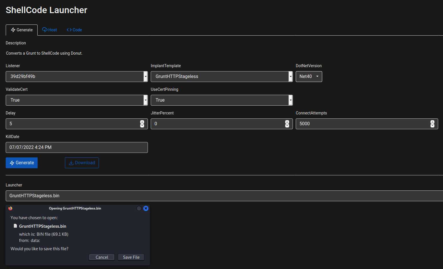 Генерация шеллкода в Covenant