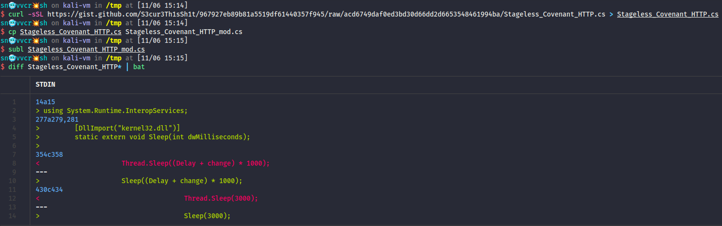 Я загружу код кастомного stageless-импланта и изменю в нем задержки (Delays), реализованные через Thread.Sleep, на полноценный вызов Sleep из kernel32.dll.