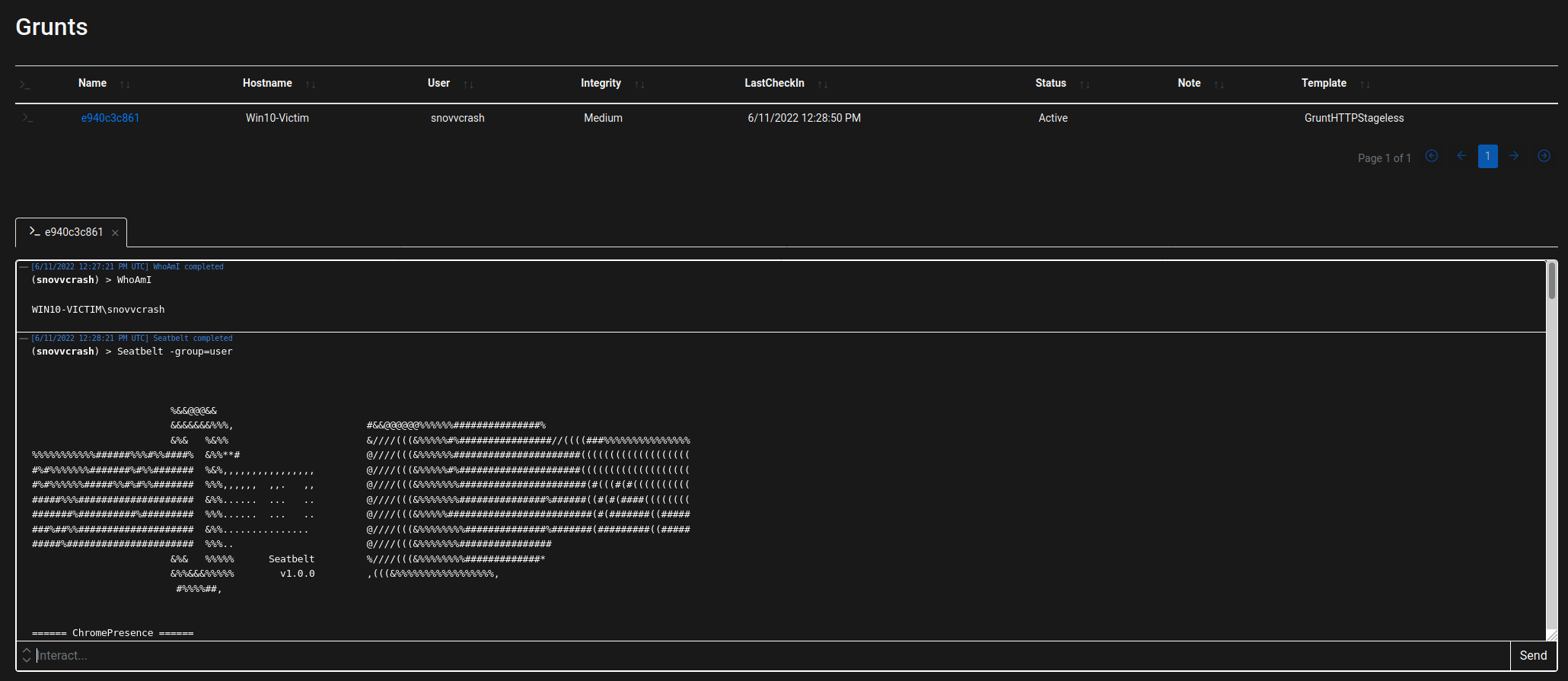 На первый взгляд, и правда, выглядит как ничего не значащий набор байтов. Но если установить интерактивный режим маячка командой sleep 0 и «поклацать» несколько раз на Re-read в PH, нам откроется истина.