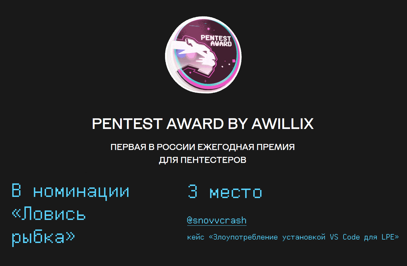 Достоинство этого метода в том, что можно получить креды привилегированной учетки в открытом виде. Расширение пишется в пользовательскую директорию ~/.vscode, поэтому даже если у админа стоит чистый VS Code, запуск модульного окна сохранится.